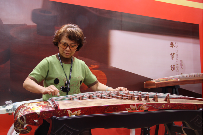 忙碌的弦昇古筝展位现场。