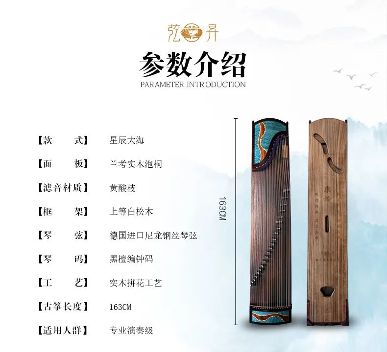 弦昇古筝-星辰大海是黄酸枝系列新款古筝,品名:星辰大海;材质:黄酸枝;工艺:实木拼花;琴弦:德国进口尼龙钢丝弦;筝码:黑檀编钟码;级别:S-163演奏级古筝