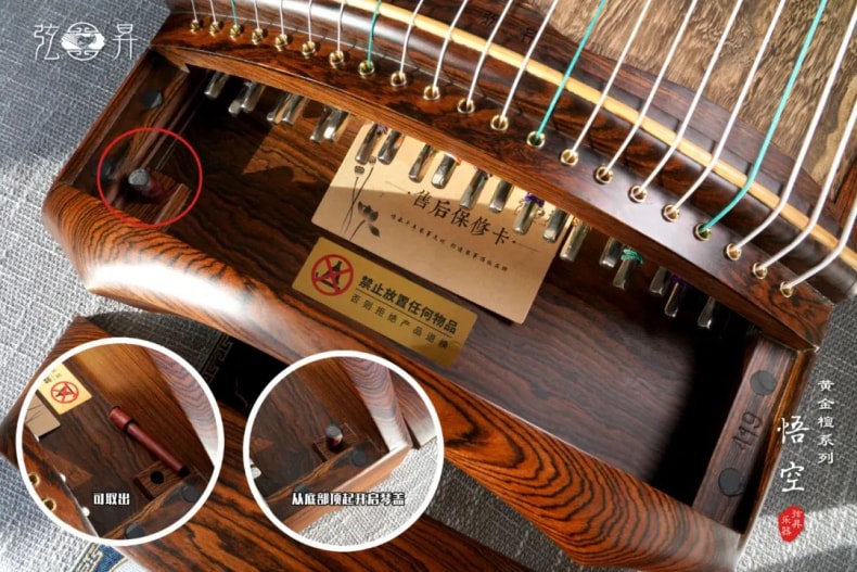 弦昇古筝-悟空是黄金檀系列高端挖筝,品名:悟空;材质:黄金檀;工艺:素面;琴弦:勒斯劳响铜合金钢丝弦;筝码:白酸枝编钟码;级别:S-163收藏演奏级古筝