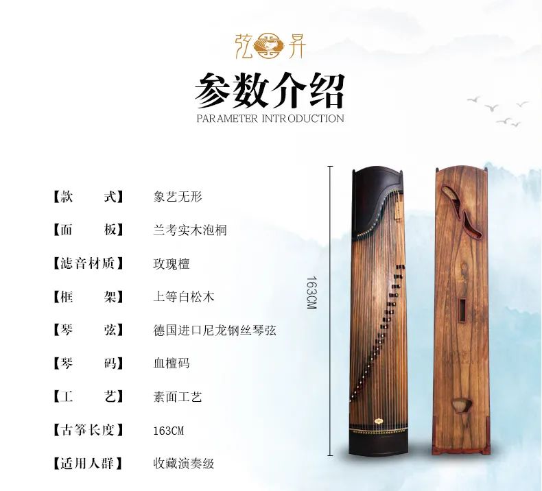 弦昇古筝-象艺无形是玫瑰檀系列高端古筝,品名:象艺无形;材质:玫瑰檀;工艺:素面;琴弦:勒斯劳响铜合金钢丝弦;筝码:白酸枝编钟码;级别:S-163收藏演奏级古筝