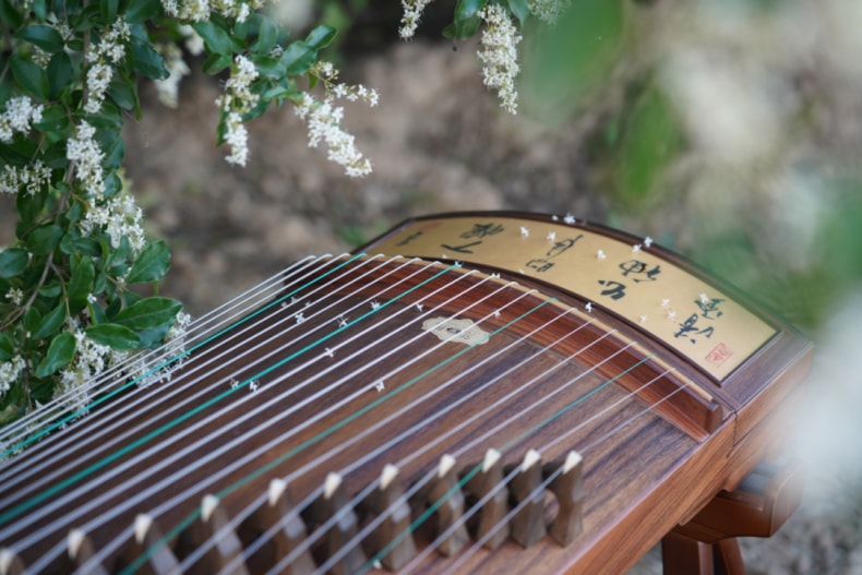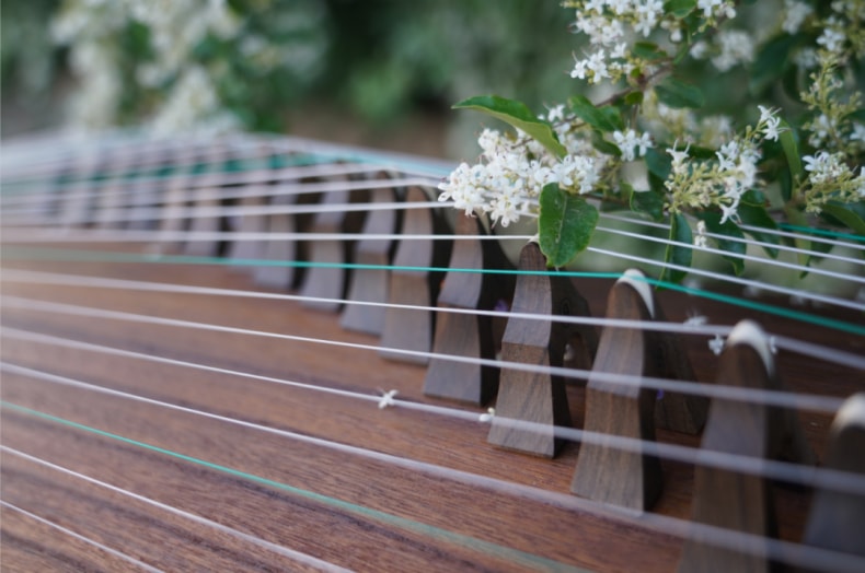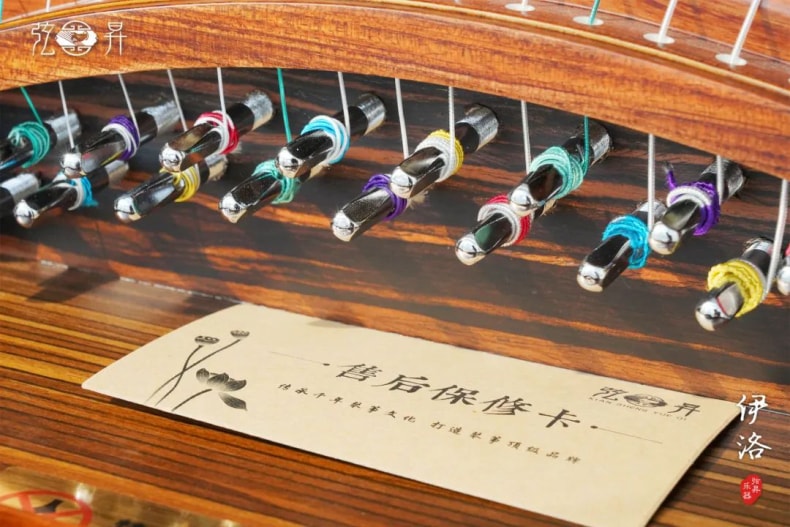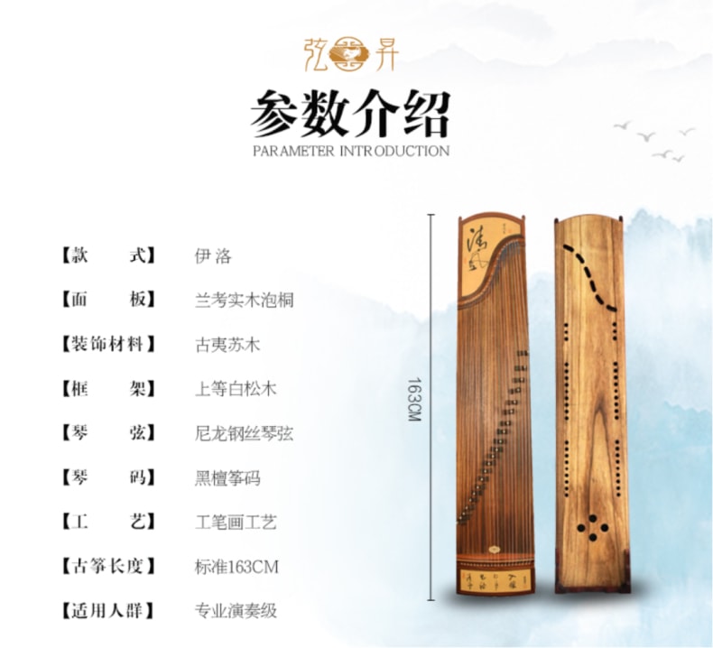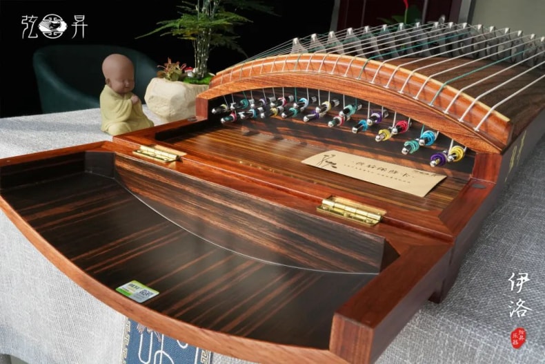 弦昇古筝-伊洛是古夷苏木系列古筝;品名:伊洛;材质:古夷苏木;工艺:中国工笔画;琴弦:德国进口尼龙钢丝弦;筝码:黑檀三角码;级别:S-163演奏级古筝