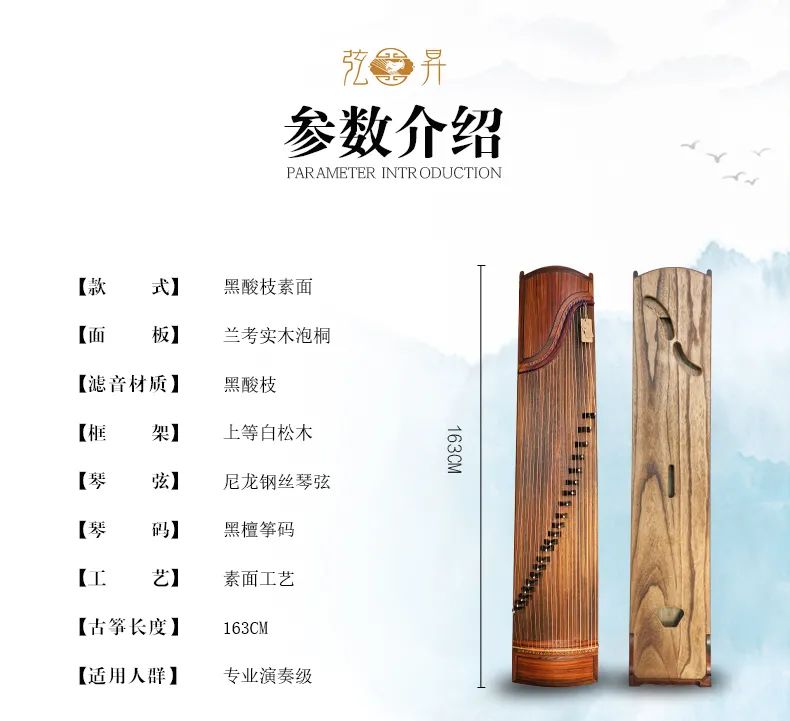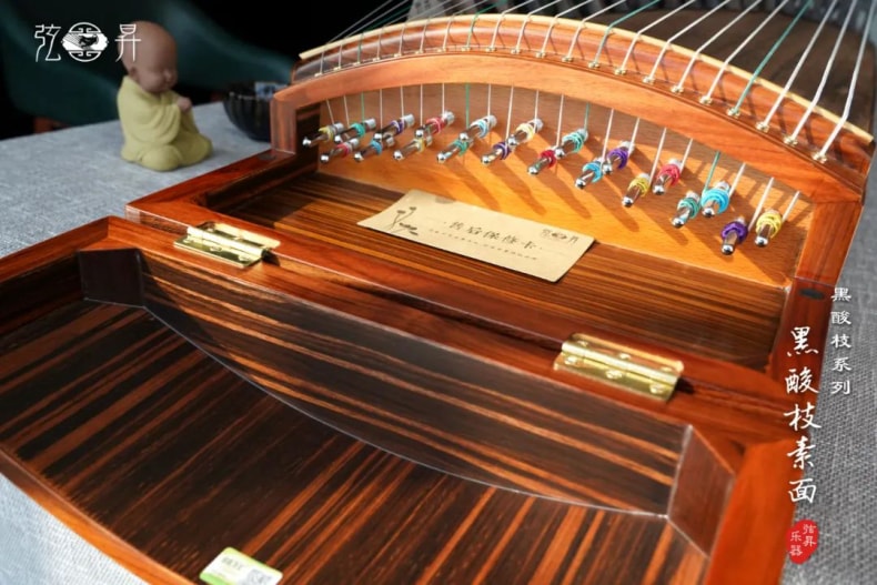 弦昇古筝-黑酸枝素面是黑酸枝系列古筝,品名:黑酸枝素面;材质:黑酸枝;工艺:素面;琴弦:德国进口尼龙钢丝弦;筝码:黑檀三角码;级别:S-163专 业演奏级古筝