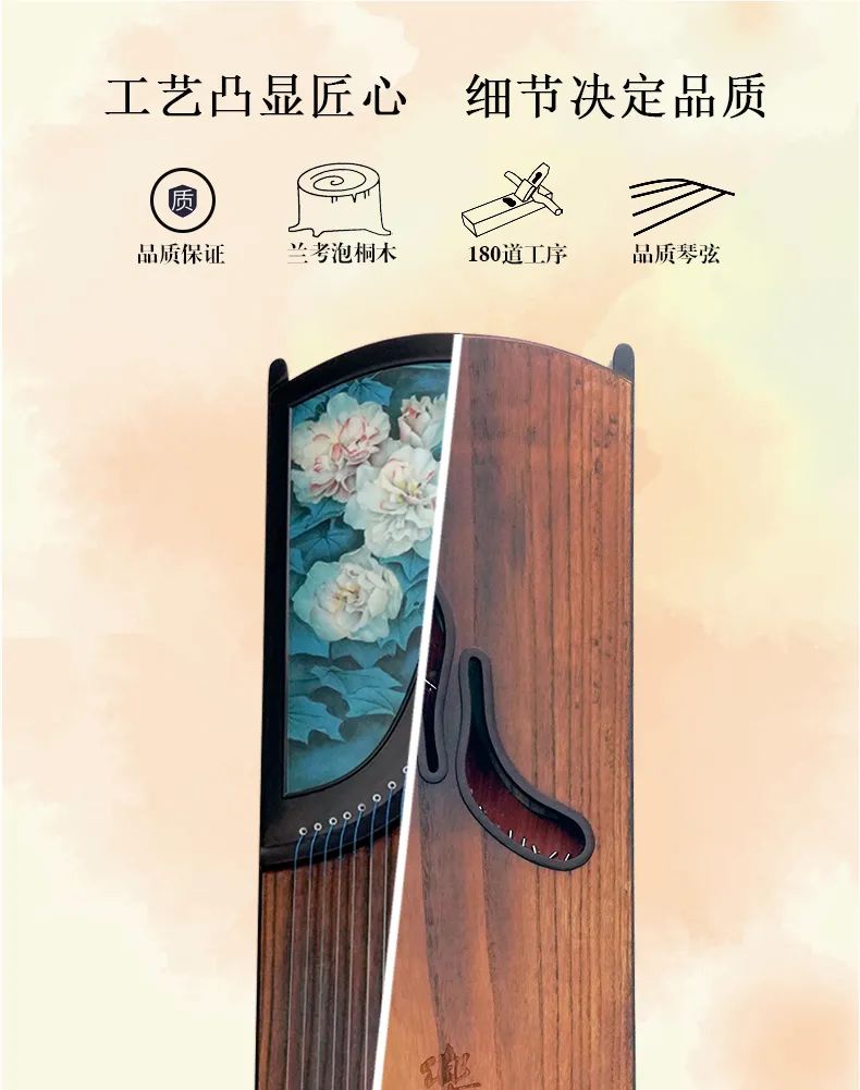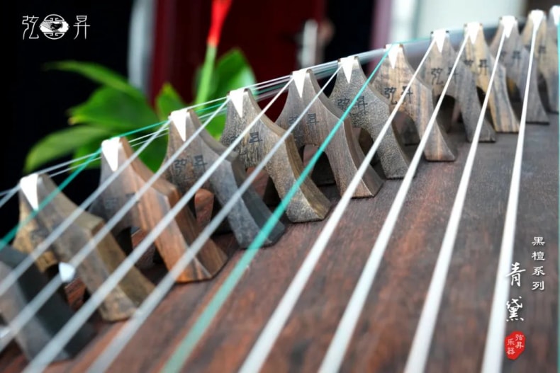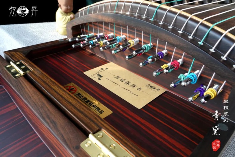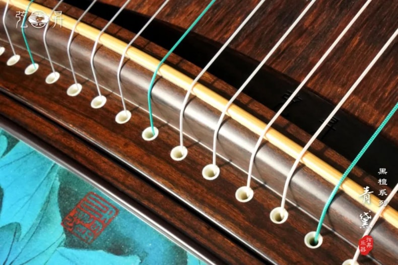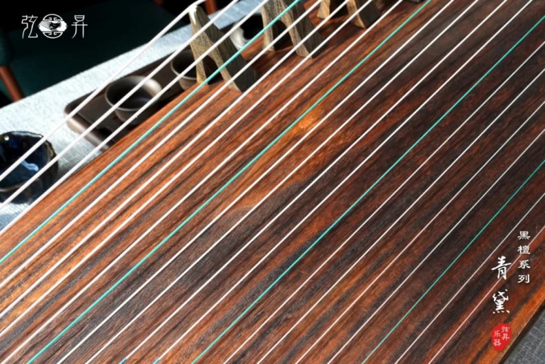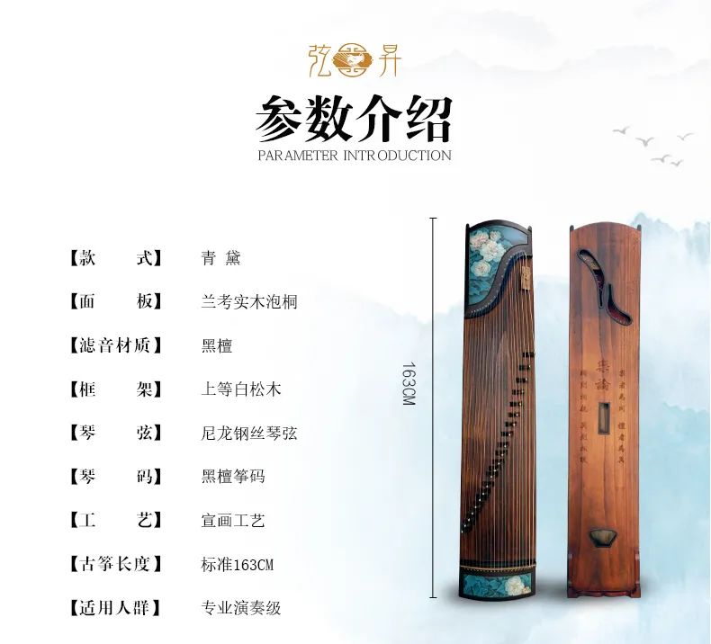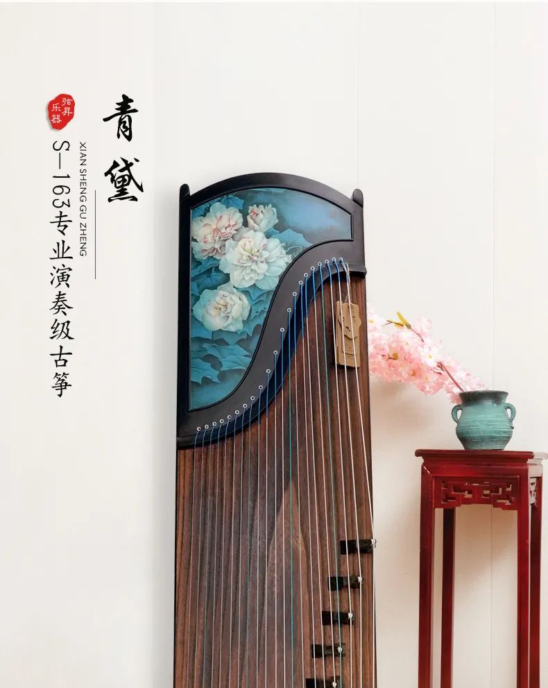 弦昇黑檀系列古筝-青黛;品名:青黛;材质:黑檀;工艺:宣画工艺;琴弦:德国进口尼龙钢丝弦;筝码:黑檀三角码;级别:S-163专 业演奏级古筝。