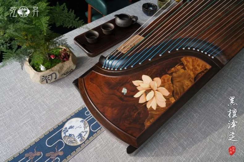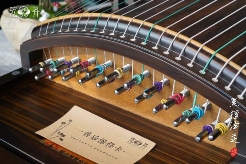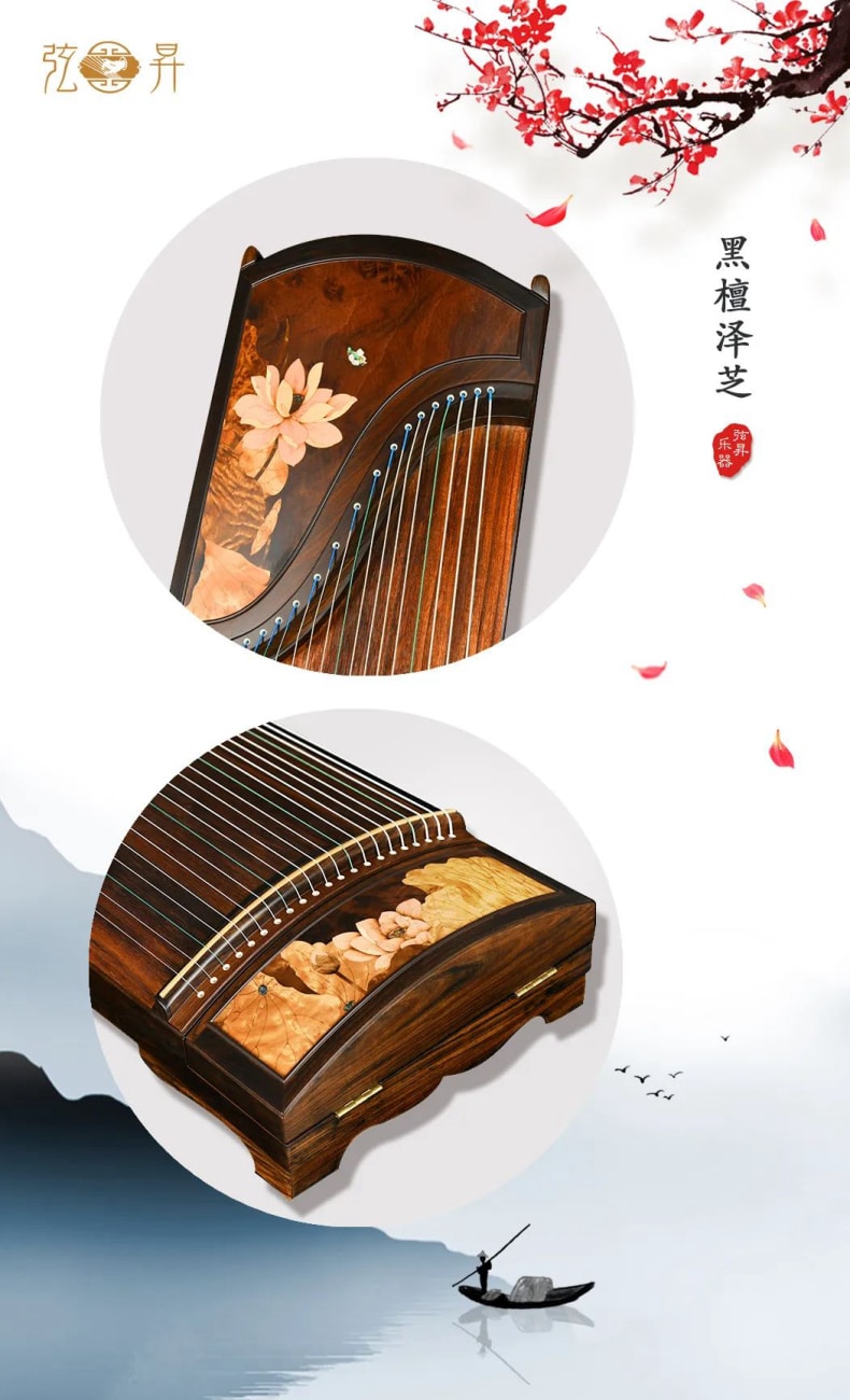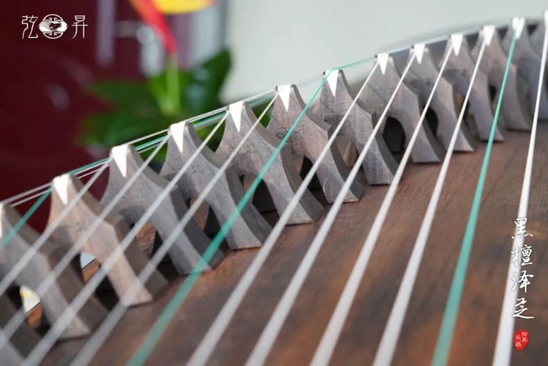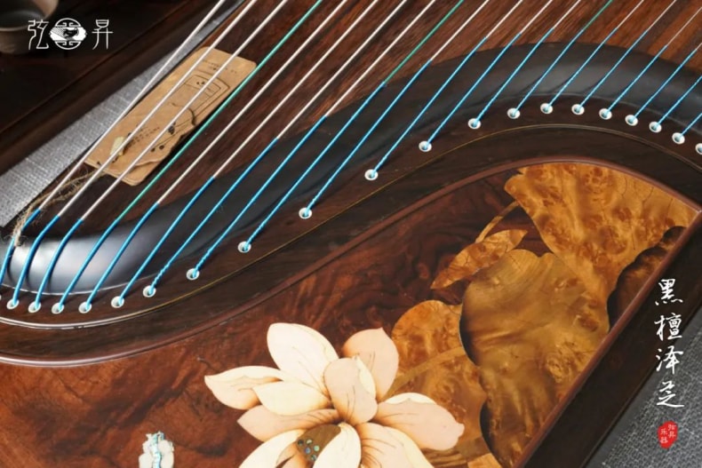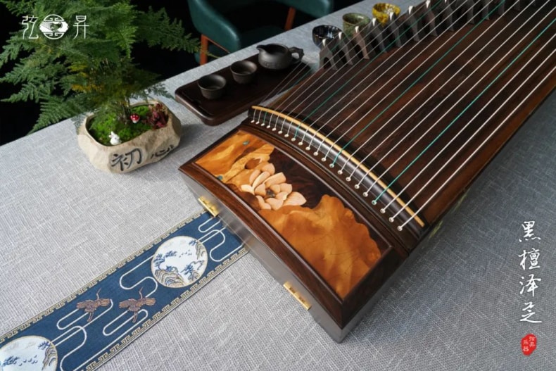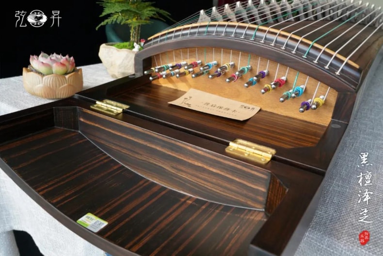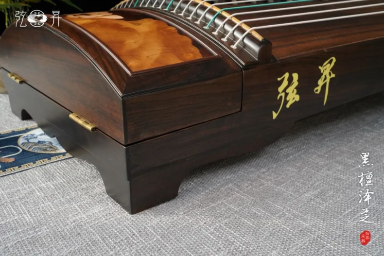 弦昇古筝——黑檀泽芝,属于弦昇黑檀系列古筝。品名:泽芝;材质:黑檀;工艺:实木拼花工艺;琴弦:德国进口尼龙钢丝弦;筝码:黑檀三角码;级别:S-163专 业演奏级古筝。